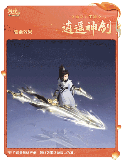 小妖首先带来今年春节的第一个惊喜:万众期待的全新双人坐骑【天赐·逍遥神剑】游戏内实机终极爆料!