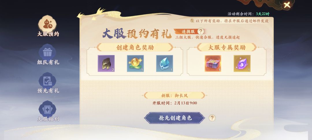 今天人气和福利兼具的春节连携系列服也来了,首服【御长风】今天正式开启游戏内预约!2月13日9:00正式开服!