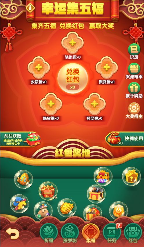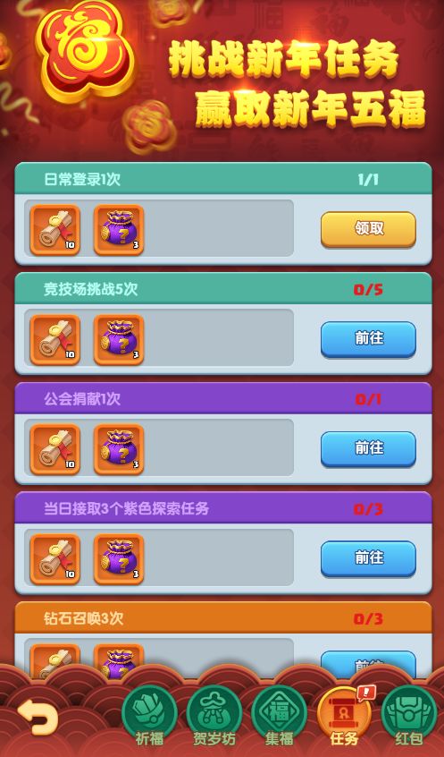 活动期间,每日完成任务可以获取五福随机礼包奖励!