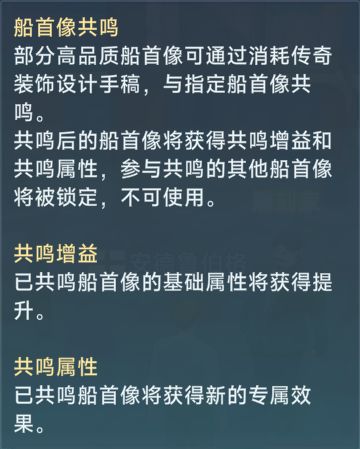 一船首像共鸣系统船首像共鸣系统是高品质船首像(金色品质)以上可以5个组合进行共鸣,主共鸣船首像获得属性提升及特殊效果.