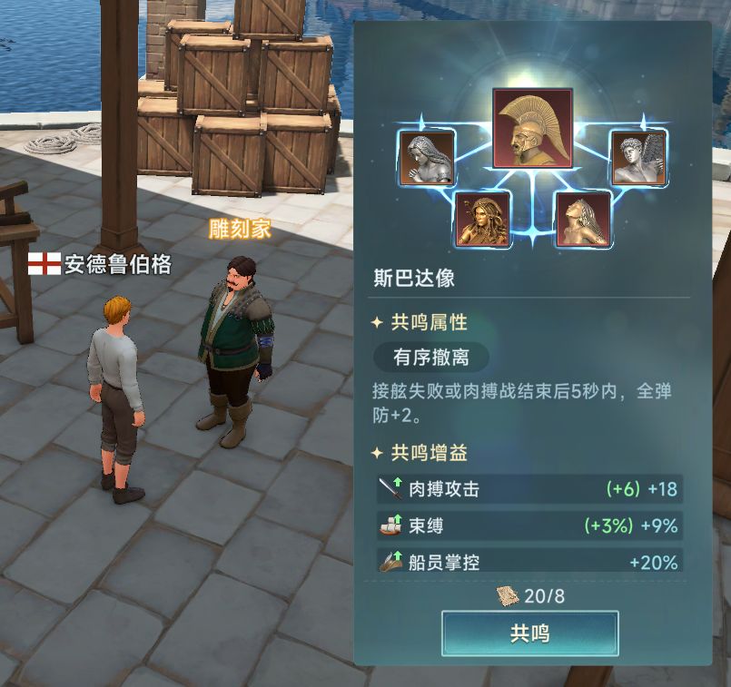 (5)如何共鸣,找到npc雕刻家(各大枢纽主城都有),放入共鸣船首像及消耗8张传奇手稿。