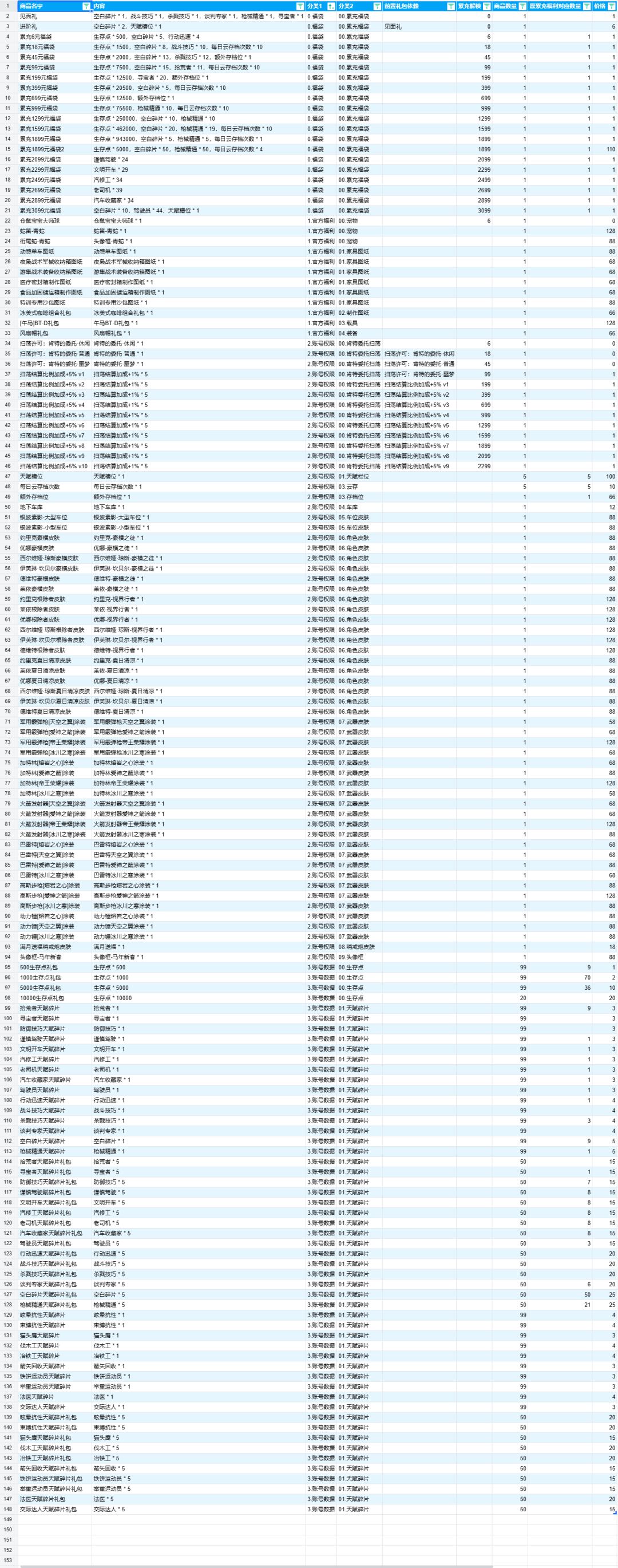 1.对于黑券商城礼包内容不可见问题,因目前制作组无法腾时间重做黑券商城UI,整理了以下表格数据供大家参考。