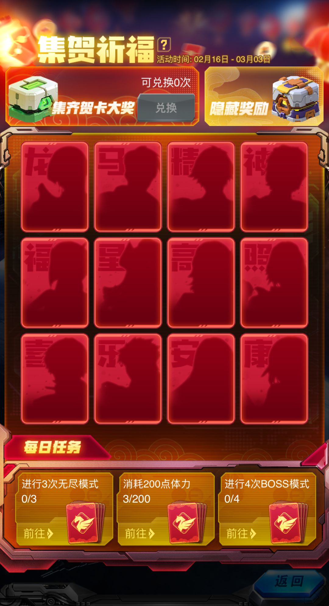每日完成活跃任务可获得新春灯笼、钻石、体力等奖励!若解锁所有灯笼还可以获得额外奖励,需要的大大们不要错过哦!