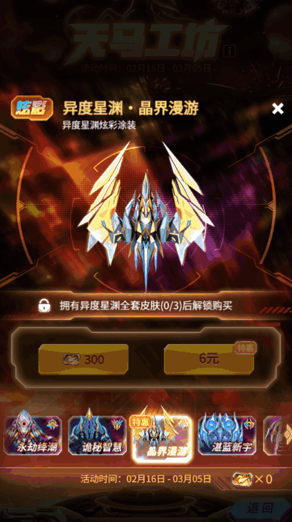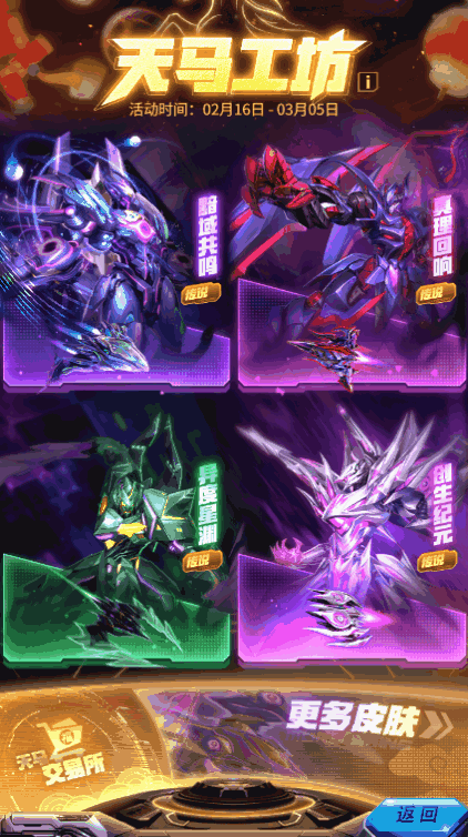 首次亮相的「炫彩皮肤」——在经典设计基础上重构视觉表现,以全新的形态遨游在星际战场,定义战场视觉新纪元!参与活动获得的「天马券」 还可直接兑换炫彩皮肤、S级装备等资源。