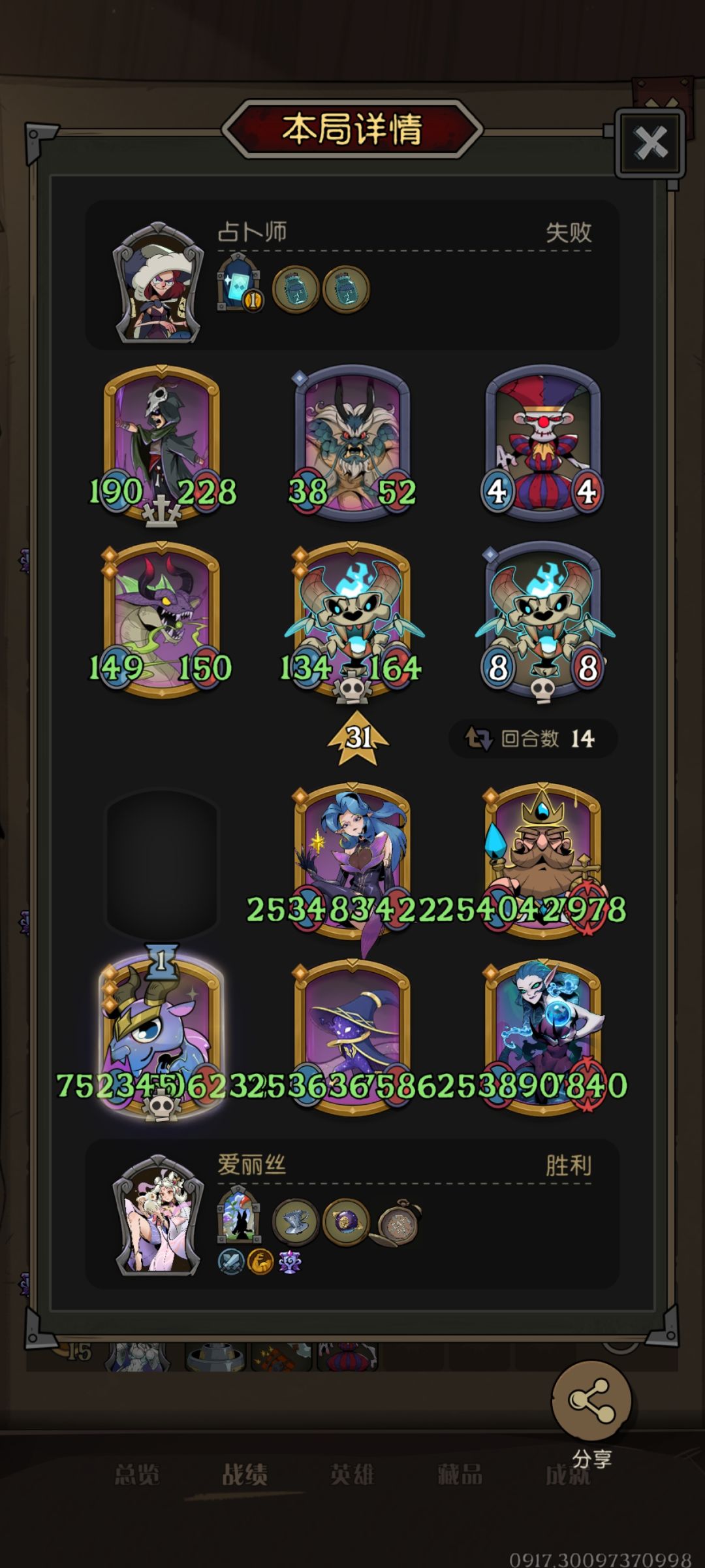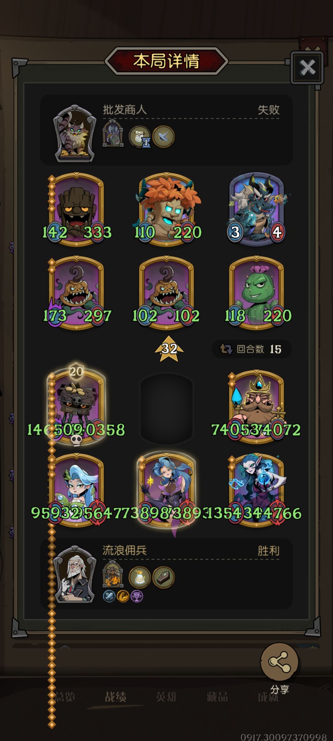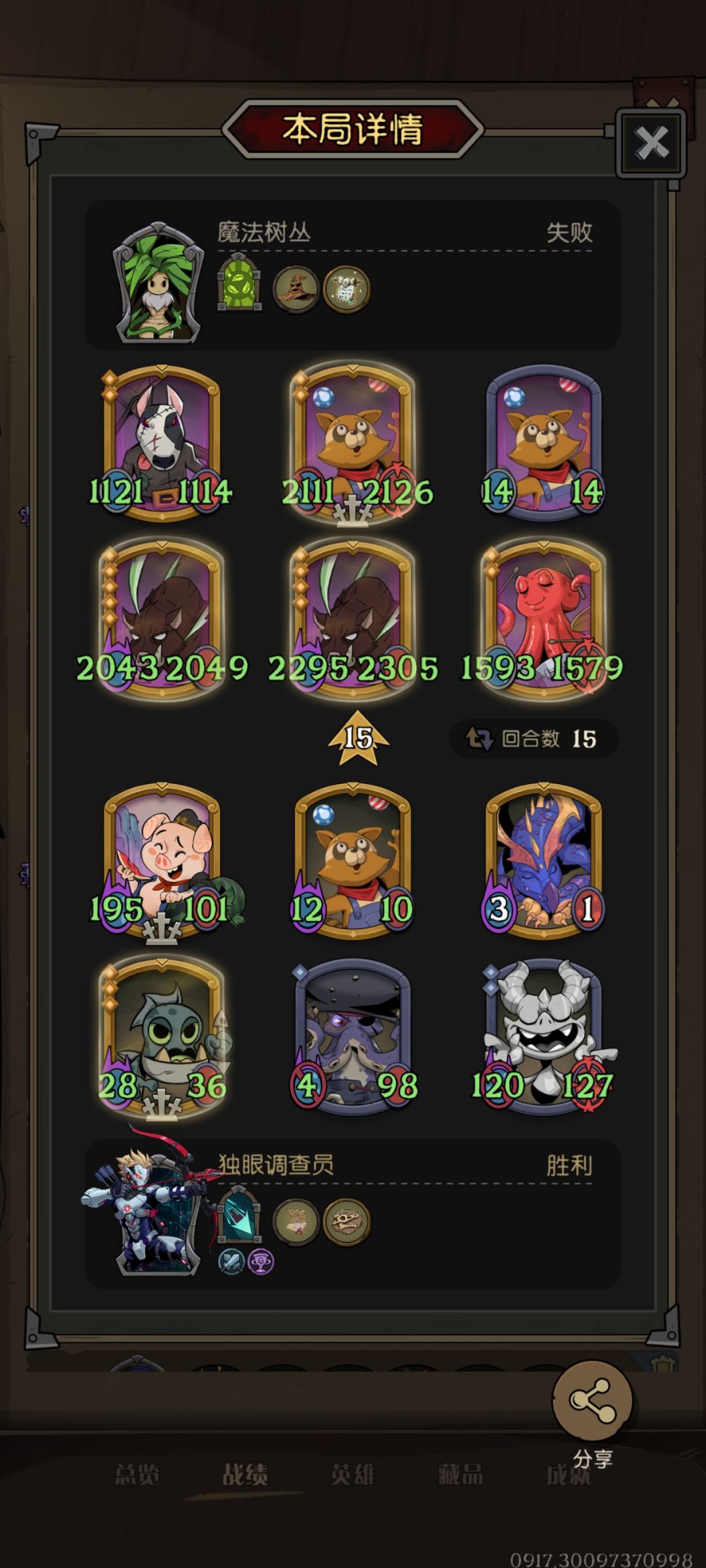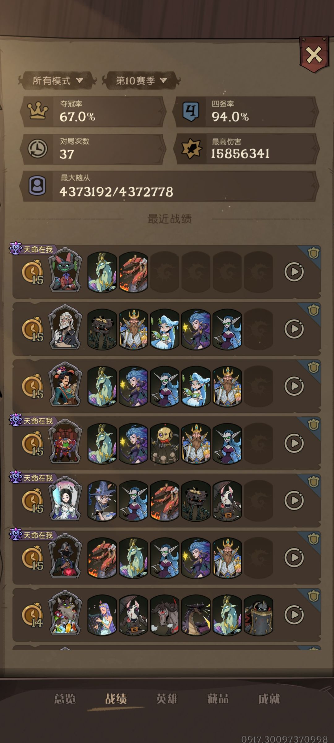 9.其他感觉没啥了,有问题或者不同思路可以留言交流,最后附上一些我个人的战报,大家可以看下最终阵容。