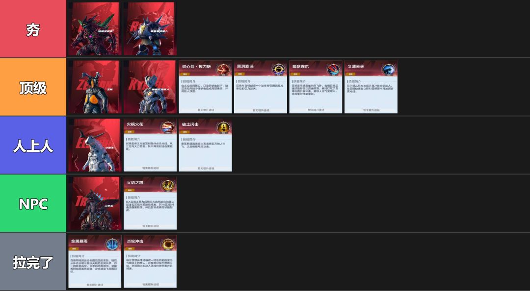 观众朋友们大家好这不是最近PVP又要新增加新的角色嘛?我这边也来锐评一下超时空中排位所有的怪兽强度(包括援护怪兽)