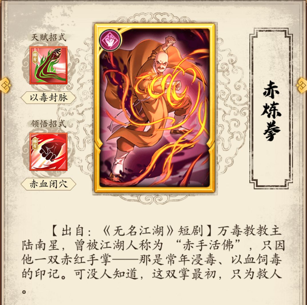 这个赤炼拳和煤炼影蛇拳是有故事的,之所以他是稀有武学,是因为东岐毒王的影蛇拳更胜一筹,所以是绝世武学。