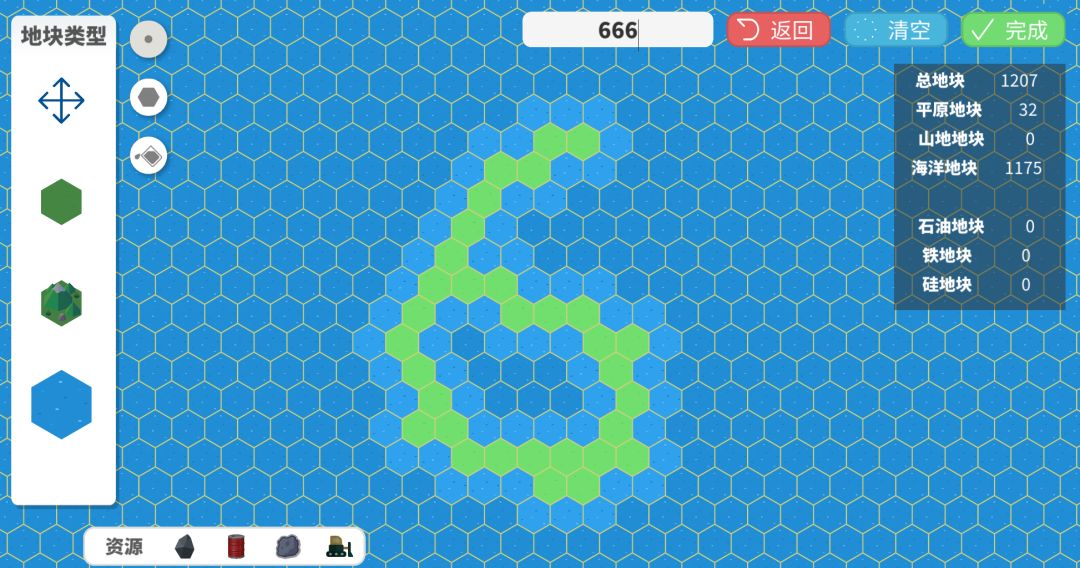 地形旁边的按钮为填充模式。依次是单点绘制、一圈绘制和同类型填充。