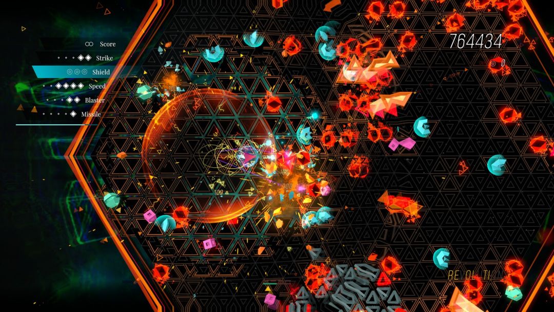 这种设计迫使玩家的视线必须如雷达般不断扫描,在躲避蜂拥而至的敌群——包括横冲直撞的粉色立方体、追踪你位置的蓝色十字镖以及只有背对时才会迫近的黄色刀片——的同时,时刻提防脚下瞬息万变的地形。游戏初期,玩家仅有三层护盾,任何一次撞击或失误都意味着迅速且残酷的失败,许多初次接触的玩家生存时间甚至难以超过一分钟。这种高压力环境正是其“心流”体验的起点:它要求并将玩家训练到必须将全部注意力投入当下,任何杂念都会导致瞬间崩盘。