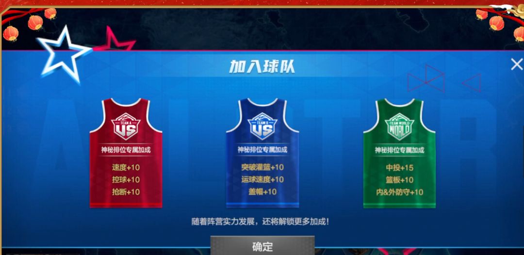 2月10日~3月1日,玩家们可以来参与“全明星嘉年华”,帮助你喜欢的战队一扫天下。玩家们在初次进入“全明星嘉年华”活动后,可以从三个阵营中任意选择一个加入。每个阵营会带来不同的神秘排位专属加成!玩家们可以根据自己的球队属性,加入收益最大的阵营。