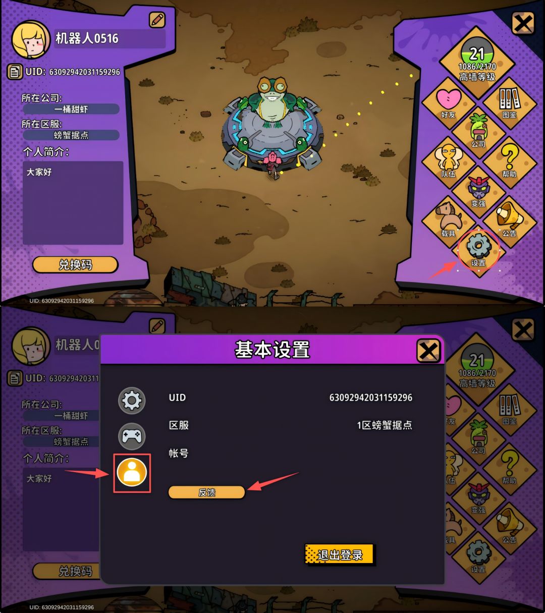 (1) 在游戏内小地图【左上角图标】 - 【设置】 - 【用户】 - 【反馈】 - 填写相关的描述,进行BUG反馈。
