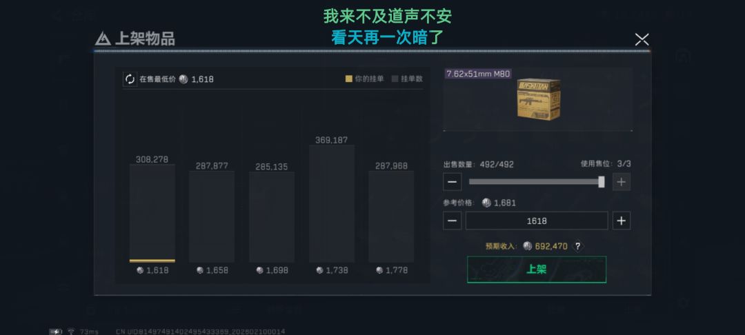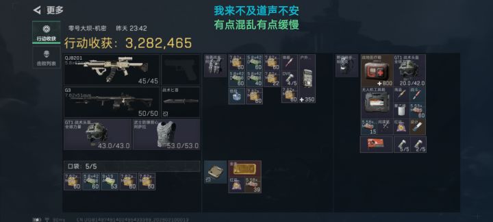 他子弹70万+,枪50万+,头甲胸挂背包药70万+,200万战备打机密大坝,光显示战备值的,明面上战备就80多万,另一个是精锐制式券,把有用的拿一下,走了。