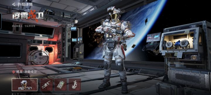 因为是太空主题吧,所以这一身很白,皮肤也还原到了那种太空服。但是感觉白的有点单调了,也没什么突出的亮点啥的,而且肩膀还有那些尖尖突出来的像个羽毛🪶,好丑啊。总之我觉得一般,不知道你们怎么看