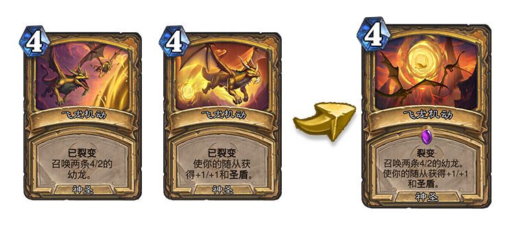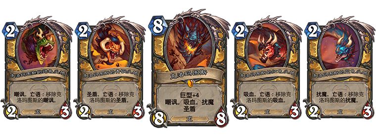 然后版本职业特色,法师、牧师、德鲁伊、猎人和圣骑士,每个职业都会有一张传说级守护巨龙卡牌。