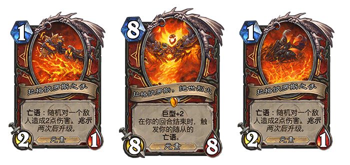 新关键词“兆示”是类似此前登场过的“祈求”,在使用带有该词条的牌将会升级对应的卡牌。比如图片5中的末世特使,使用后会“兆示”图片4的拉格纳罗斯,绝世烈火,提升其卡牌效果。