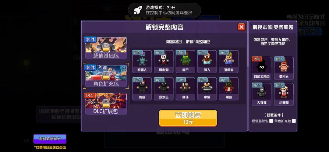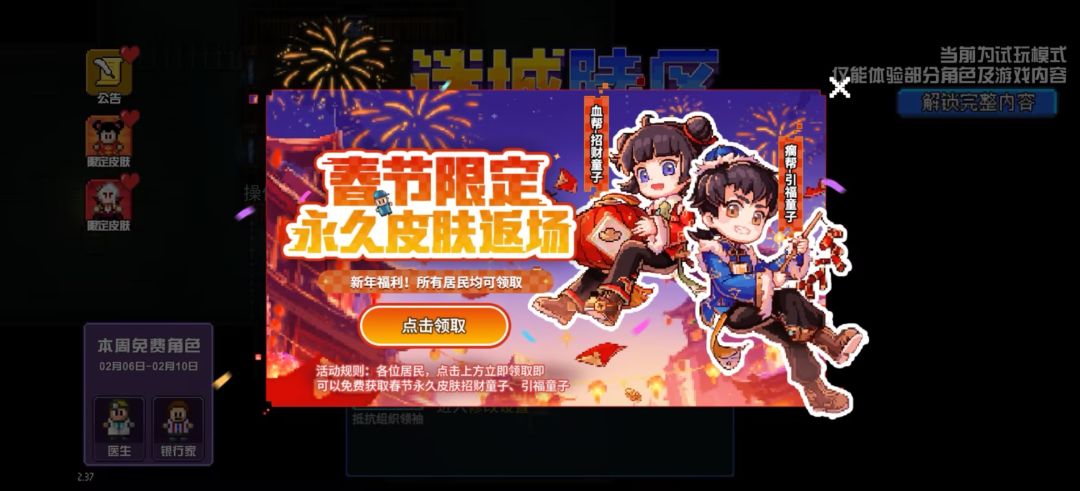 『热门角色限免体验』