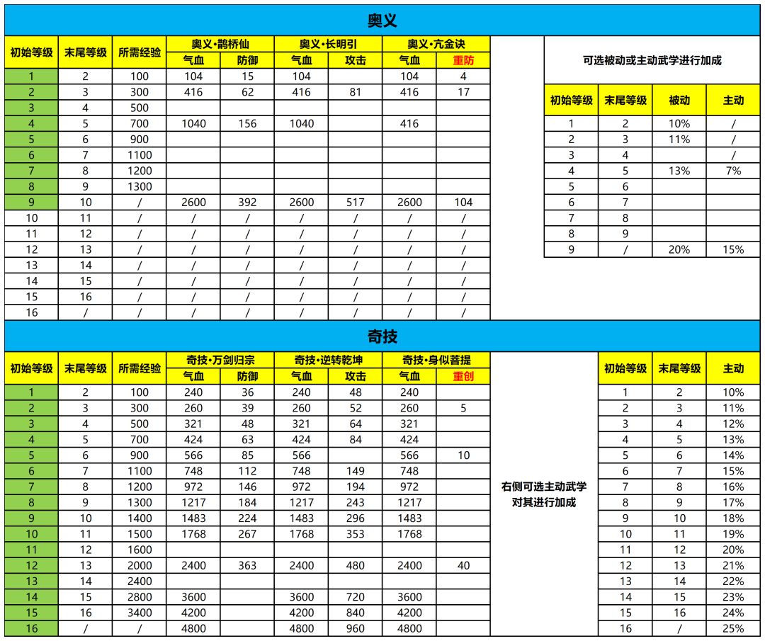 【数据统计】奥义和奇技统计(待完善)