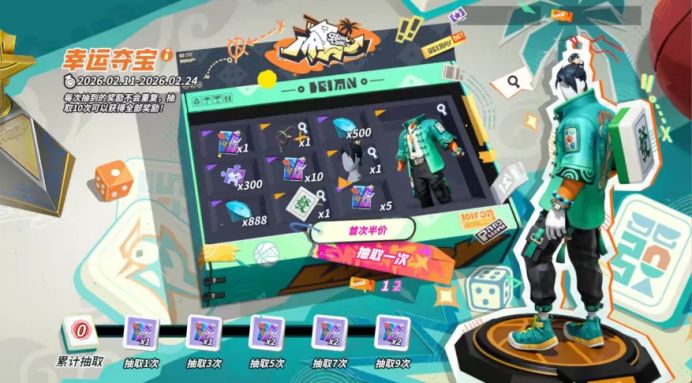 2月11日至2月24日,[有牌面 幸运夺宝]时装活动来袭。高级时装[有牌面]、888钻石、时装碎片等你来拿,达到累计抽取次数,还可额外再带走共计8份风尚潮人自选包!