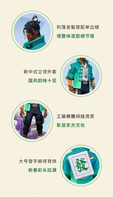 而这份风靡联盟的乐趣,不止在牌桌上,更能被你穿在身上!派对新一期[幸运夺宝]时装爆料来袭,将新中式设计与麻将元素巧妙融合,快艾特你那个钟爱国粹的兄弟来看!