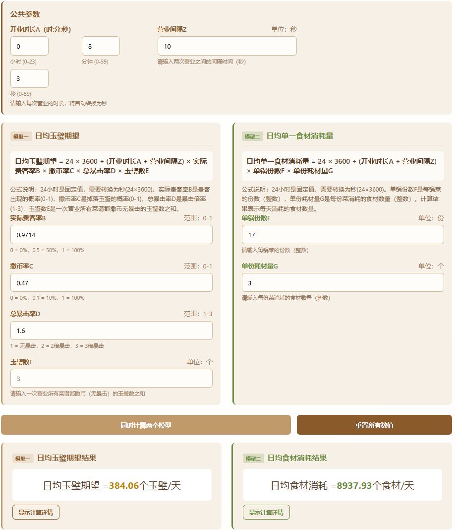 如果是1玉璧那日均玉璧收入除以3就好了,能看出来这菜谱虽然时间特别短,但是受制于火数的贵客率和份数限制,也超不过首发的拔丝雪梨;优势就是不消耗珍贵食材,即使食材用完了也能抽新手池补上。要真是1玉璧还不如其他5火菜了,那就看着刷一刷,把符文刷够;要是3玉璧最好能一次刷完食材,不知道以后会不会改。