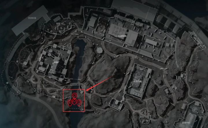 2. 沿河滩前进,找到瞭望塔,在其右下角堆叠的沙包夹角处。