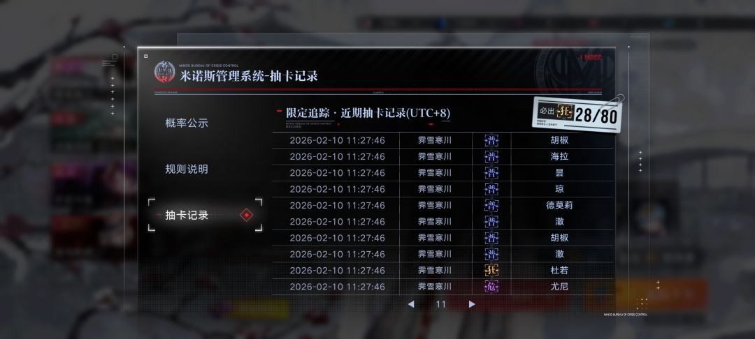 300抽四锁,一杜诺一嗷呜,嗷呜后触发大保底,剩下的等白嫖行了