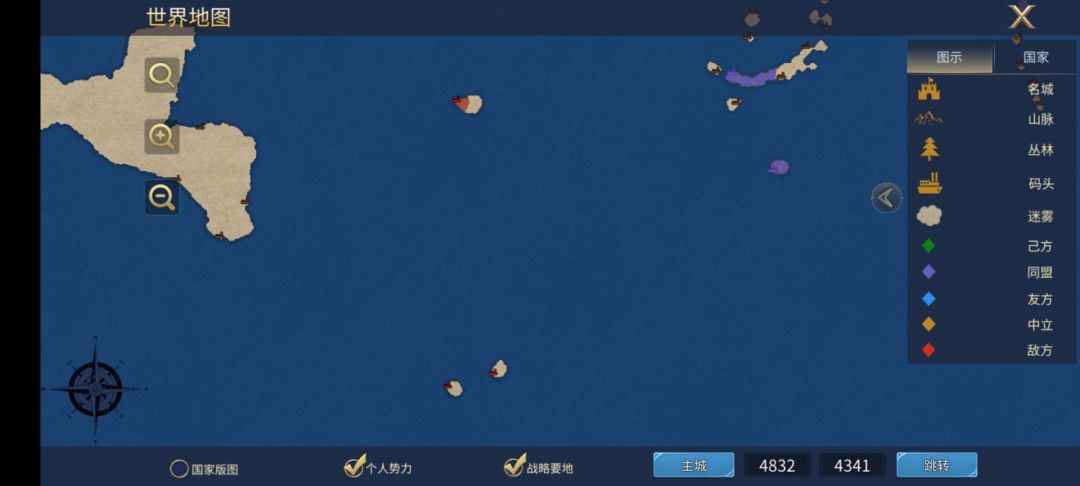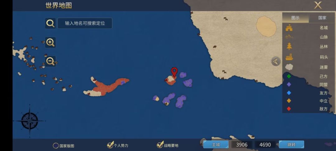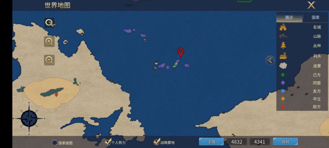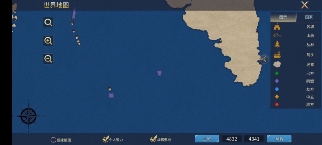 此处位置,非常重要,因为直接关系到印洲的归属!这里是登录印洲右下方最近的位置,第一个目标城市就是奇琴,这里有一个奇迹:奇琴神庙,从这里往上,有好几个连在一起的低等级名城,能够顺势一路收入囊中!