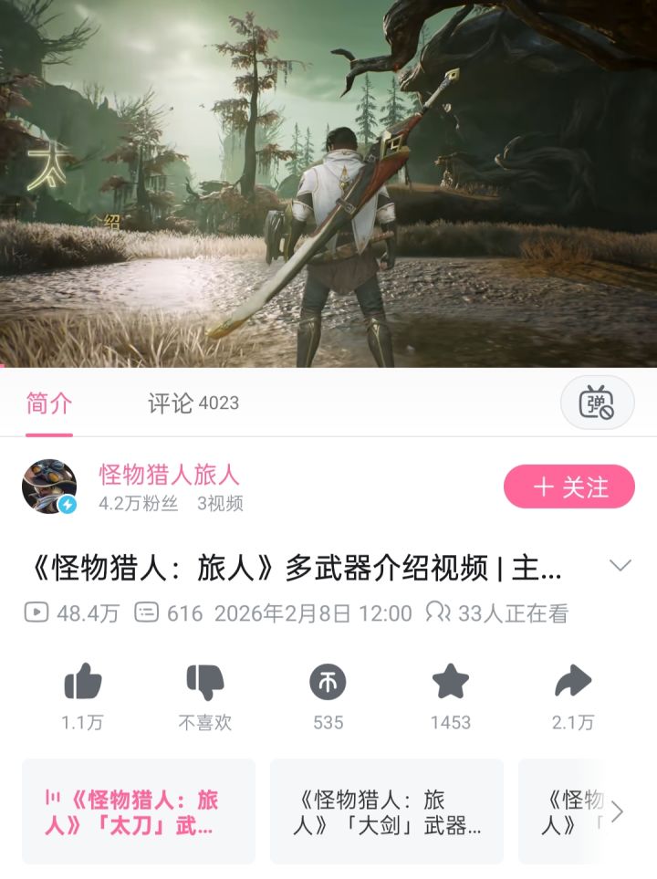 近日,《怪物猎人:旅人》官方正式发布了四段武器介绍视频,详细展示了双剑、太刀、重弩枪和大剑的战斗特色这款由卡普空正版授权、腾讯天美工作室研发的移动端狩猎大作,计划于2026年7月正式上线,此次公开的武器介绍视频,揭示了游戏在保留系列经典战斗风格的同时,为移动端操作特性进行了针对性优化,好耶是更适合中国宝宝体质的怪猎手游![[TapTap表情|TapFamilyxdoro2_粉狗比心]](https://img.tapimg.com/market/images/101c7e3200596fe8e03765080b467fb8.gif)