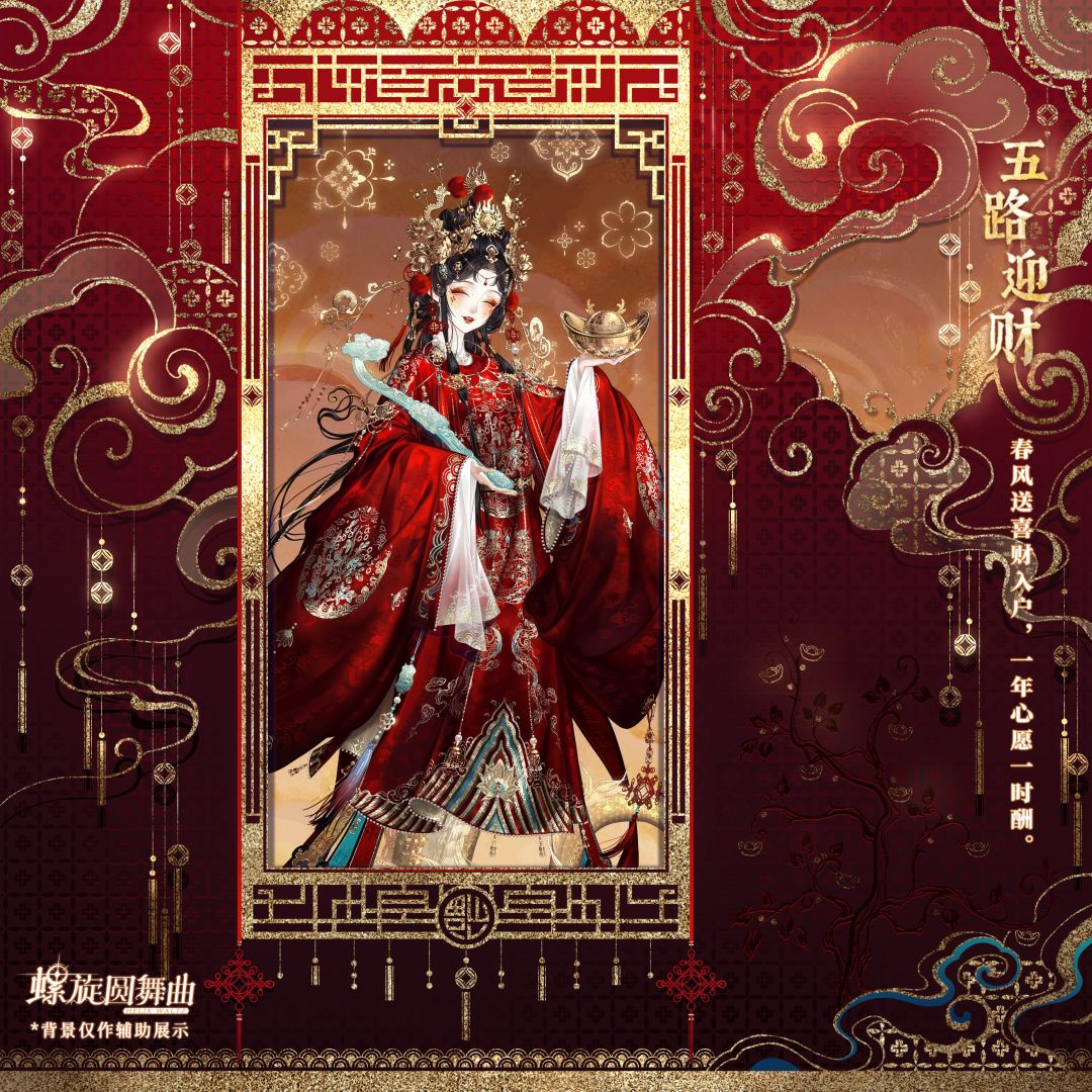 2月13日6:00-2月22日23:59,完成不同档位累充任务,即可获得「五路迎财」套装部件。