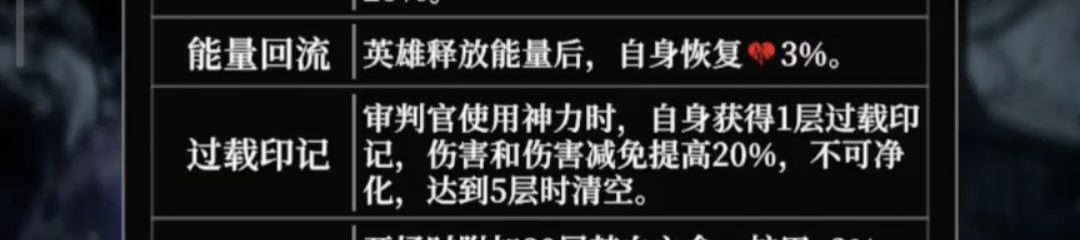 4.(重要)过载印记的层数利用,前两次神力我们只在大部分角色快使用技能时使用【黯蚀血咒】,到了第三个血咒能量满时,经过我们对亲王回能的极致把控,刚好最新的分身上场,此时先用血咒,然后同时给分身与莫拉上狂热,打一波boss没有免伤的爆发(5层清空)。