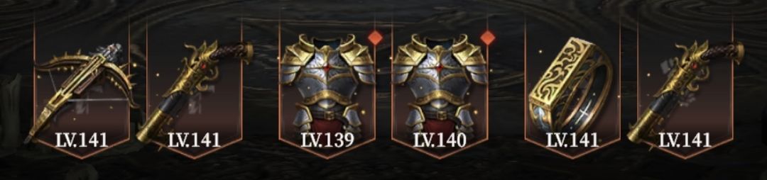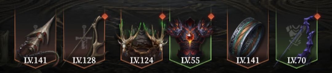 暴君骨矛、鹿角弓、兽骨冠、熔火之衣、拓木戒指、陨铁弓