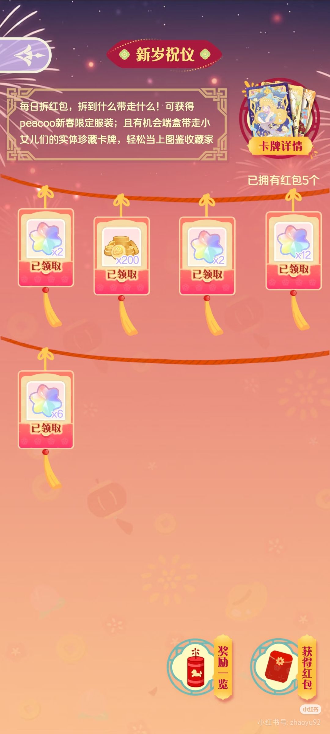 1. 首先是每天必领的两个红包——每日首次登录和首次分享贺卡,这个一定要记得每天去领,错过了会很可惜