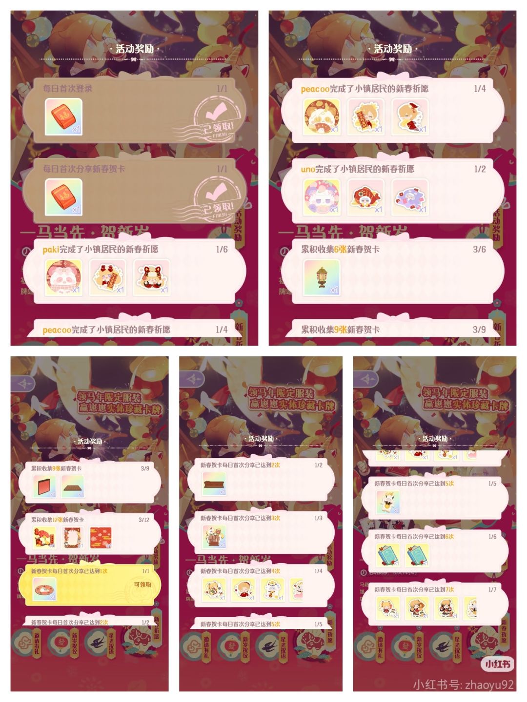 崽携带护身符带回来的新年贺卡都放在这里,点击一个分享即可,分享七次获得全部分享奖励,所以最晚要2.16开始分享