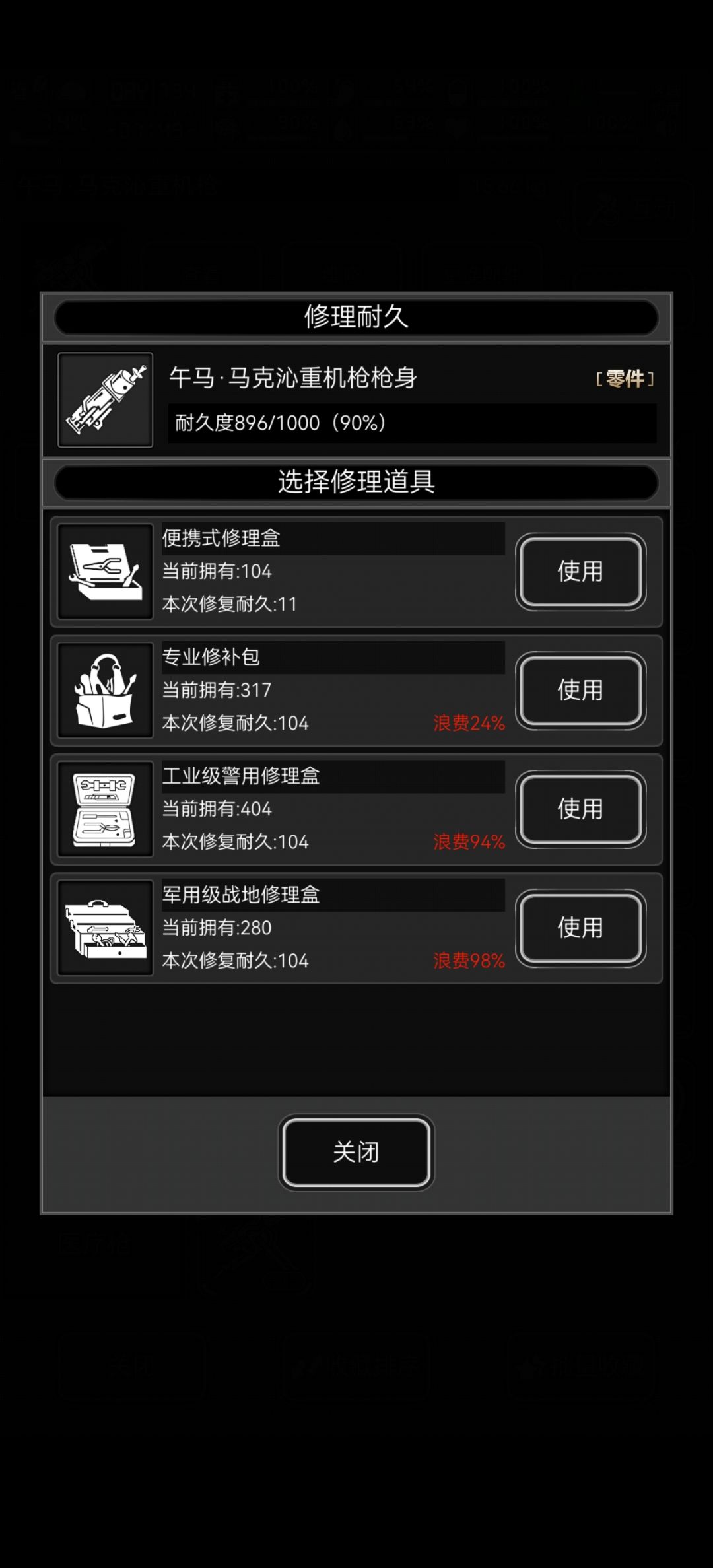 先说结论,马弓和马克沁大概是五阶装备的水平而非六阶(马克沁装备专属弹夹556),首先这两把都能用最低四级修理盒维修(无法台修),图中仅展示特殊零件维修成本,马弓弓臂使用五级维修盒单独修理大概一个修40点耐久,马克沁枪身一个六修维修大约1733点耐久,远超于耐久上限,五修维修大约137点耐久。