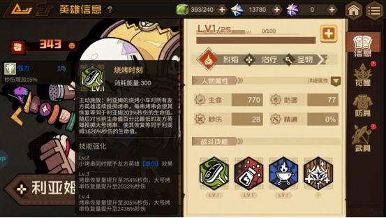 技能强化:Lv.2 小烤串同时赋予友方英雄【增伤】效果;Lv.3 烤串恢复量提升至254%秒伤,大号烤串恢复量提升至2032%秒伤;Lv.4 烤串恢复量提升305%秒伤,大号烤串恢复量提升2438%秒伤