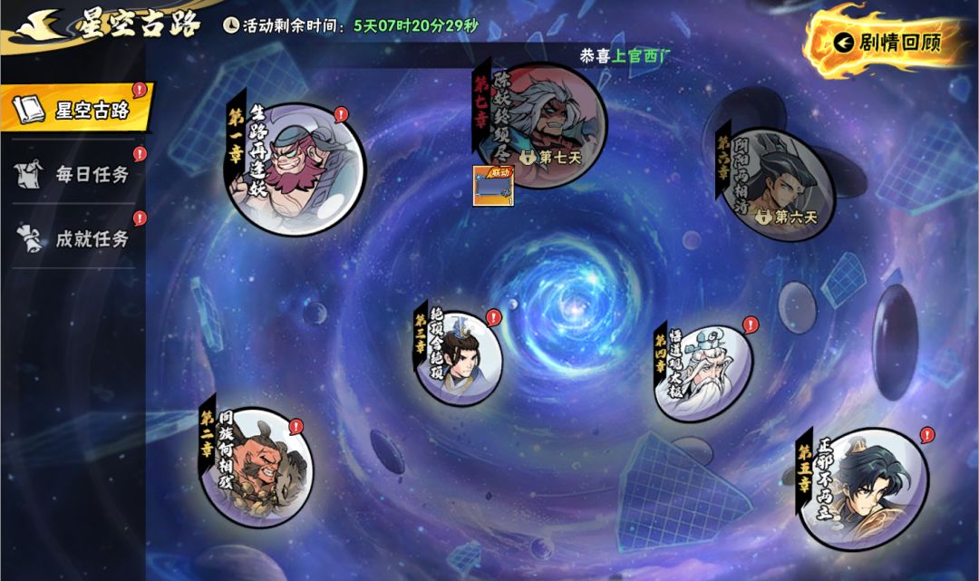 叶凡降临武侠大明星的世界,这次又发生了怎样的奇遇呢,少侠每天解锁一个剧情可活动天帝令*1、金绿玉*50的奖励,天帝令可用于招募联动侠客-叶凡
