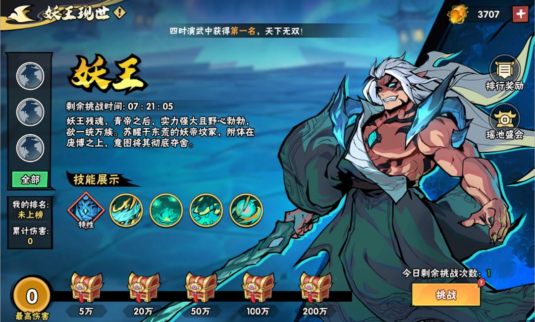 联动期间每日BOSS挑战,对妖王造成伤害可获得联动道具【龙纹黑金骰】,伤害越高奖励越丰厚!