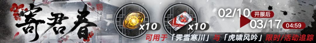 ■活动说明:局长在活动期间进行登录即可在活动页面中领取限定登录奖励【岁寒晤笺】×10、狂级魂识印记×10。