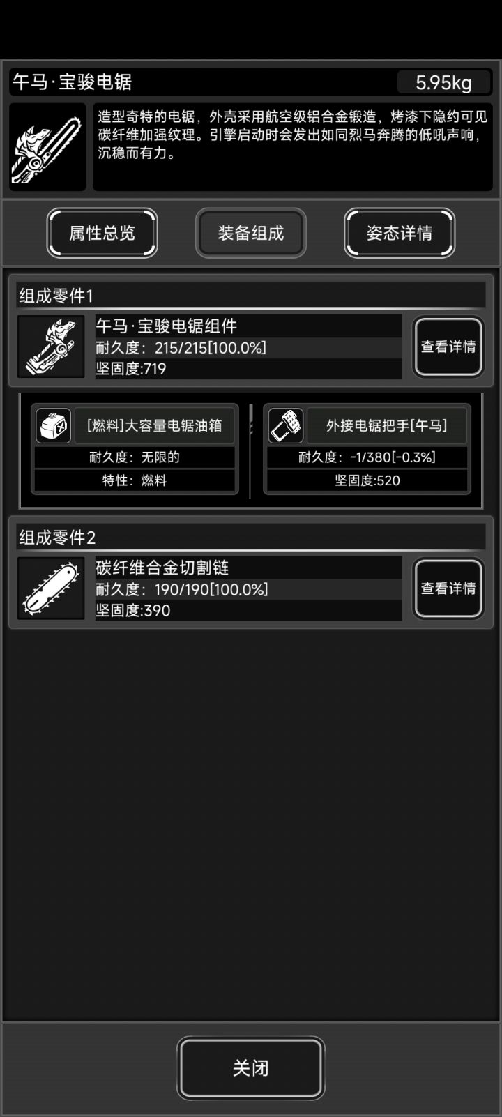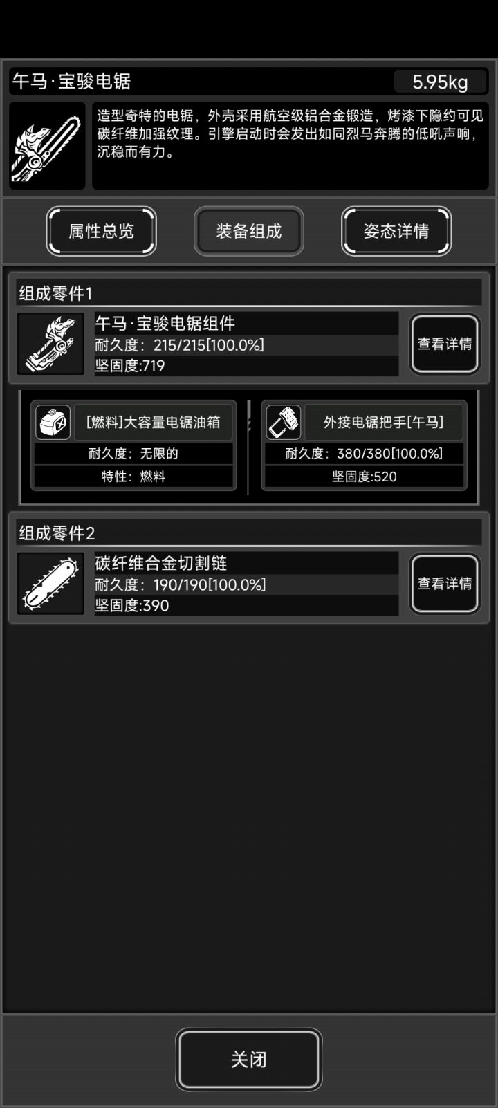 打开礼包后去装备调整台,去把马电锯进行部件替换,你就会发现本该存在的把手取代了锯链的位置,这个时候用正常的锯链替代把手就能把把手取出来了,不过耐久度是负数,记得修好了再用