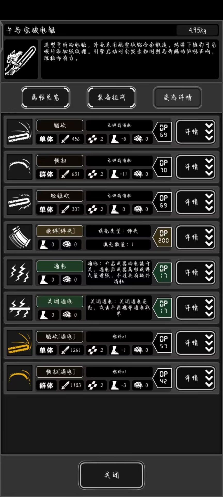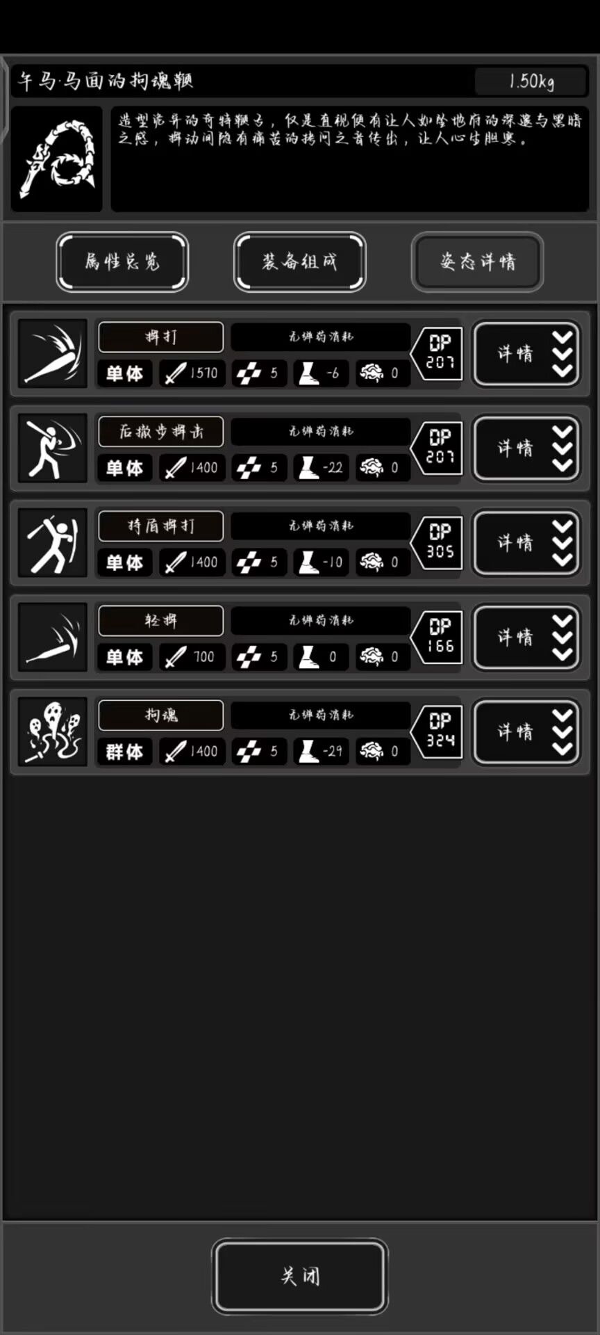 武器∶马鞭(蛇鞭上位,必换,多囤几条),马狙(伤害比蛇狙低一点,维修一个6修修满而蛇狙要7修),马电锯(旋风斩就是普通旋风斩,把手在链条位置别逗我笑),马头琴(狂热加50攻击别逗我笑),马锤(无尽炼狱没击倒击退别逗我笑),马高斯(马口和蛇口差不多,没有蛇口玩枪的可以考虑入一个)