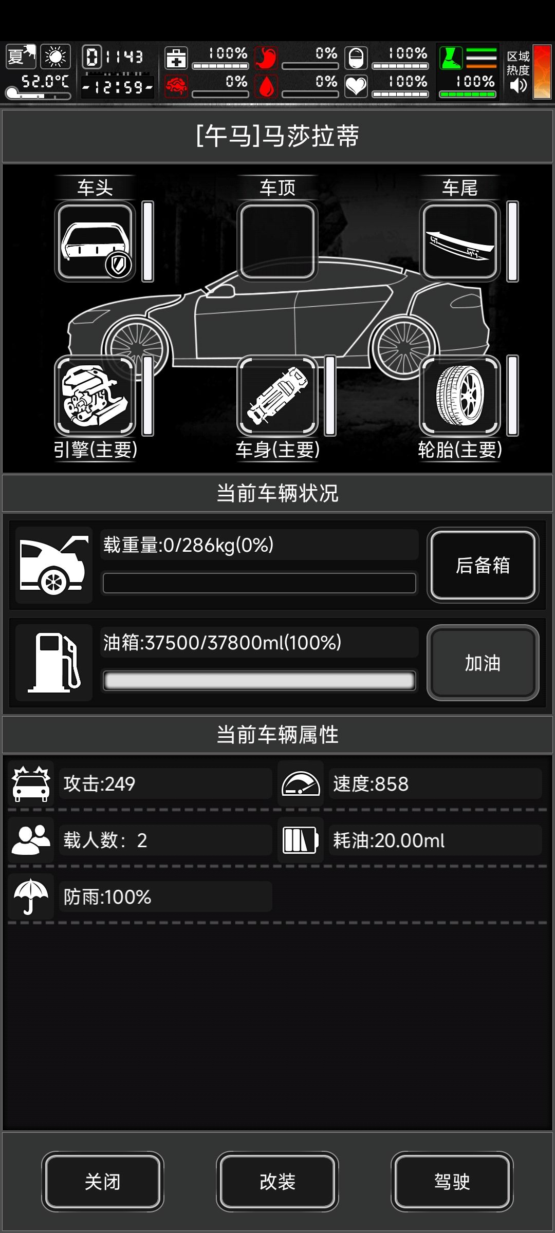 载具:BTW(热气球上位,不会遭遇事件),玛莎拉蒂(极致速度)