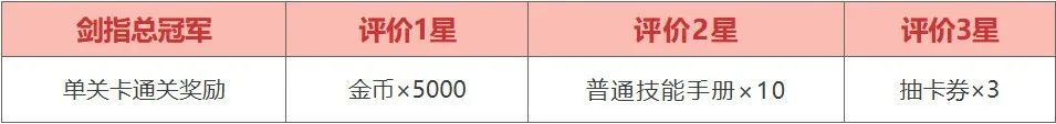 上期说到当首次挑战成功后会根据对战结果评定星级,获取对应的首通星级奖励,具体单关通关奖励设置如下: