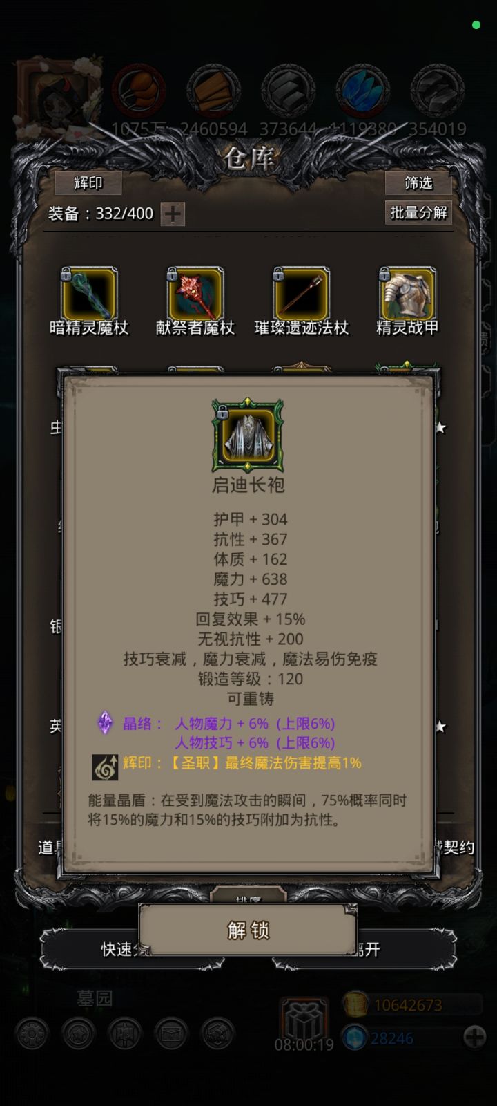 现在的装备动不动就双免疫甚至三免疫,在没有圣戒的时候纯靠蓝剑剑豪照样过了伊兹玛尔(凑魔力衰减免疫)。拿到焚天魔印的时候激动坏了,恨不得每场都带,毕竟灼伤、力量衰减、魔力衰减免疫太香了。我变懒了,推图只管看wiki,已经不认识装备了,以前还能发个攻略啥的……但是给武器多免疫很好。