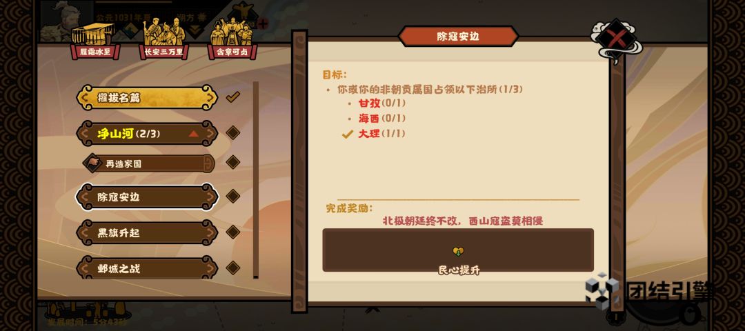 存在国家修正导致压不下去,第一次玩没顾得上打那几个地方,大唐打下来了,重新被称为附属国后,归化上不去下不来,无法结局,无法推进剧情