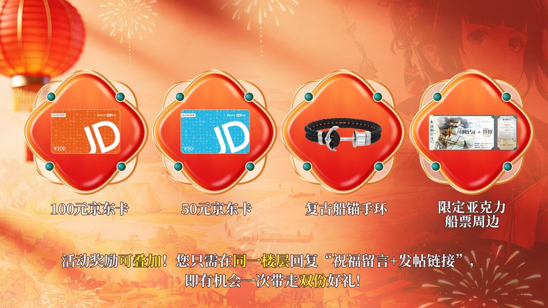 新春到,祝福到!在本活动帖下方留言指定新年祝福,即可参与京东卡抽奖。一句祝福,一份好运,愿你新年航程一帆风顺!