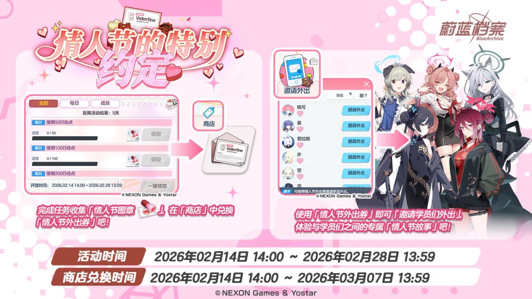 *注意:活动开启前(02月14日04:00 ~ 02月14日14:00期间),消耗行动点等游戏行为无法积累活动任务进度,请老师留意。