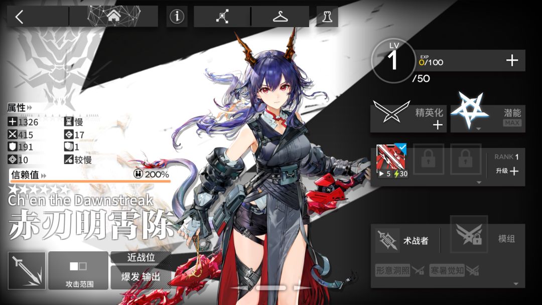 只能说,新年陪跑干员,二技能就给我一个字,帅😋😋拉刀光的那种感觉,三技能的话,总伤回转都很不错,就是比较吃关卡地形,1格战神