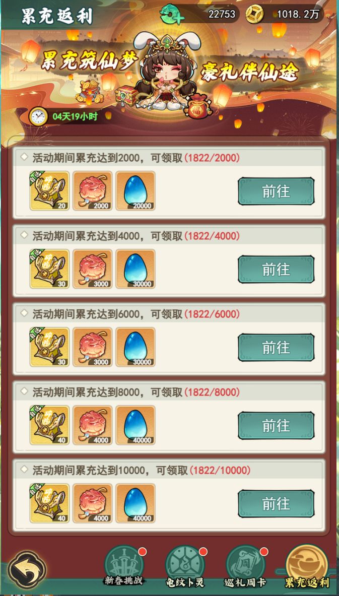 - 累充返利:活动期间累充达标,即可领取对应档位返利