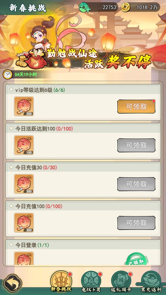 - 新春挑战:完成活跃任务,领取活跃奖励