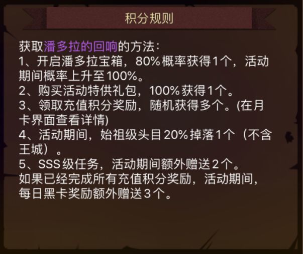 领主们需要在活动期间收集道具——潘多拉的回响